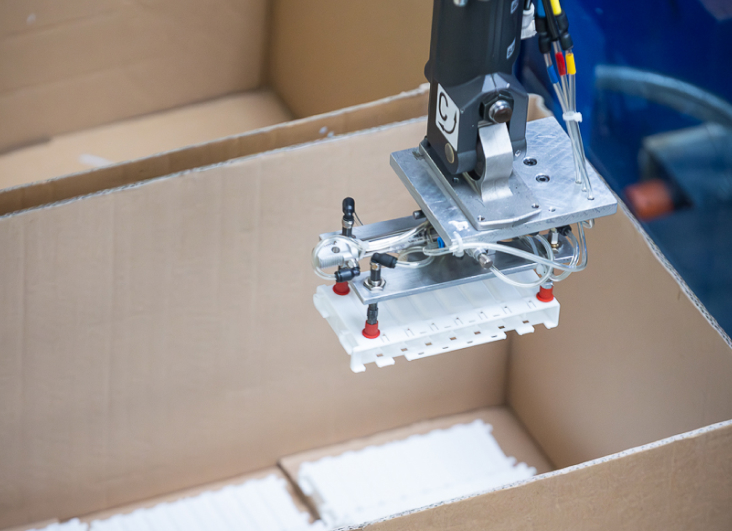 PMB Plast a conçu une solution reposant sur un couple matière–géométrie garantissant l’absence de flexion, de torsion ou de coupure des connexions. Une démarche expérimentale spécifique a été menée, incluant la réalisation d’une empreinte prototype dédiée et une campagne d’essais approfondie sur des combinaisons matière–colorant compatibles avec la stérilisation EtO.
